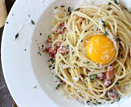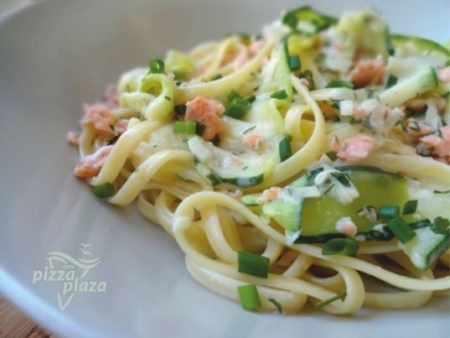 Ulubiony makaron Papieża Benedykta XVI, z łososiem, szalotką i cukinią, z dodatkiem słodkiej śmietanki, skórki i soku z cytryny, posypany oryginalnym parmezanem i świeżo zmielonym pieprzem. Najlepszy jest oczywiście dziki łosoś kupiony od okolicznych rybaków, ale też danie to wybornie smakuje z łososiem jurajskim pochodzącym z hodowli w okolicy Trzęsacza, gdzie przez cały okres ryba ta przebywa w wodzie wydobywanej z głębokości 1200 m pod ziemią. Do tego lampka chilijskiego Chardonnay i czegóż chcieć więcej?